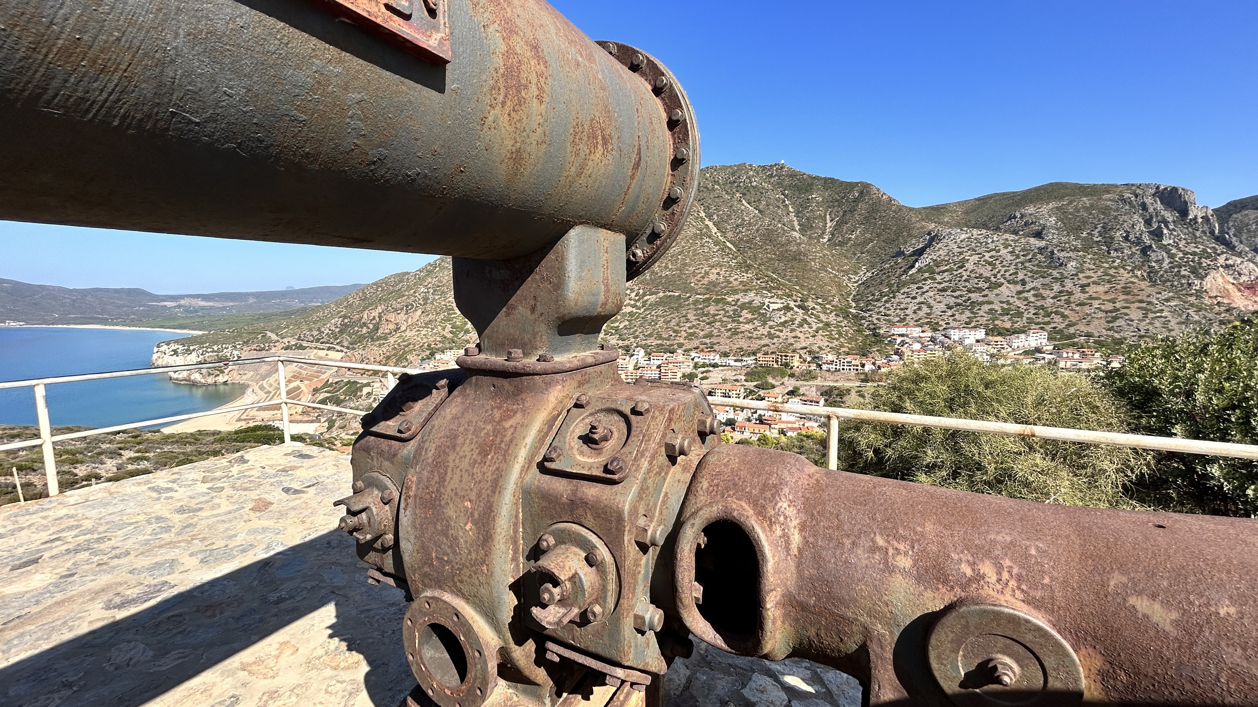 The Buggerru coast is another striking section of the tour. Here the road winds along secluded coves, cliffs and sandy beaches, set in a rugged natural context. The area also preserves traces of its historic mining tradition, with old industrial remains and landscapes shaped by past extraction activities adding cultural interest to the scenery. :contentReference[oaicite:1]{index=1}